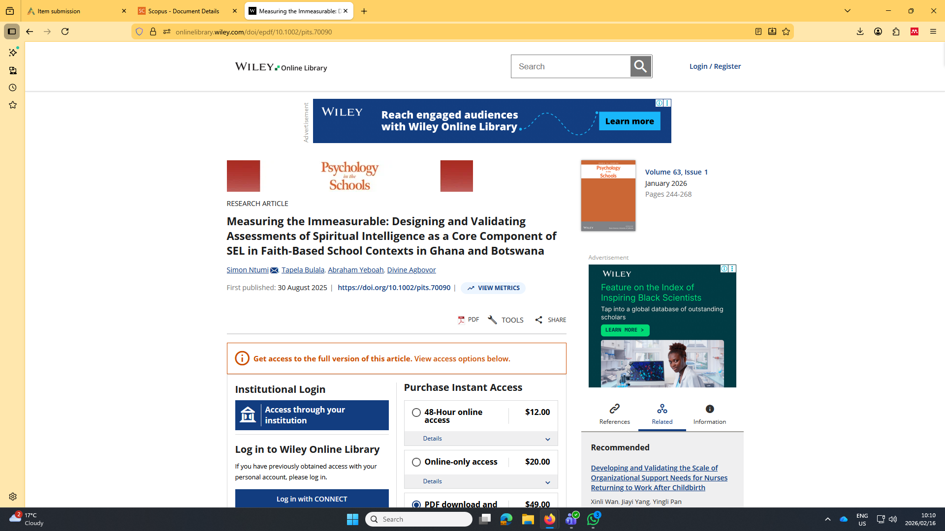 Measuring the Immeasurable: Designing and Validating Assessments of Spiritual Intelligence as a Core Component of SEL in Faith-Based School Contexts in Ghana and Botswana.